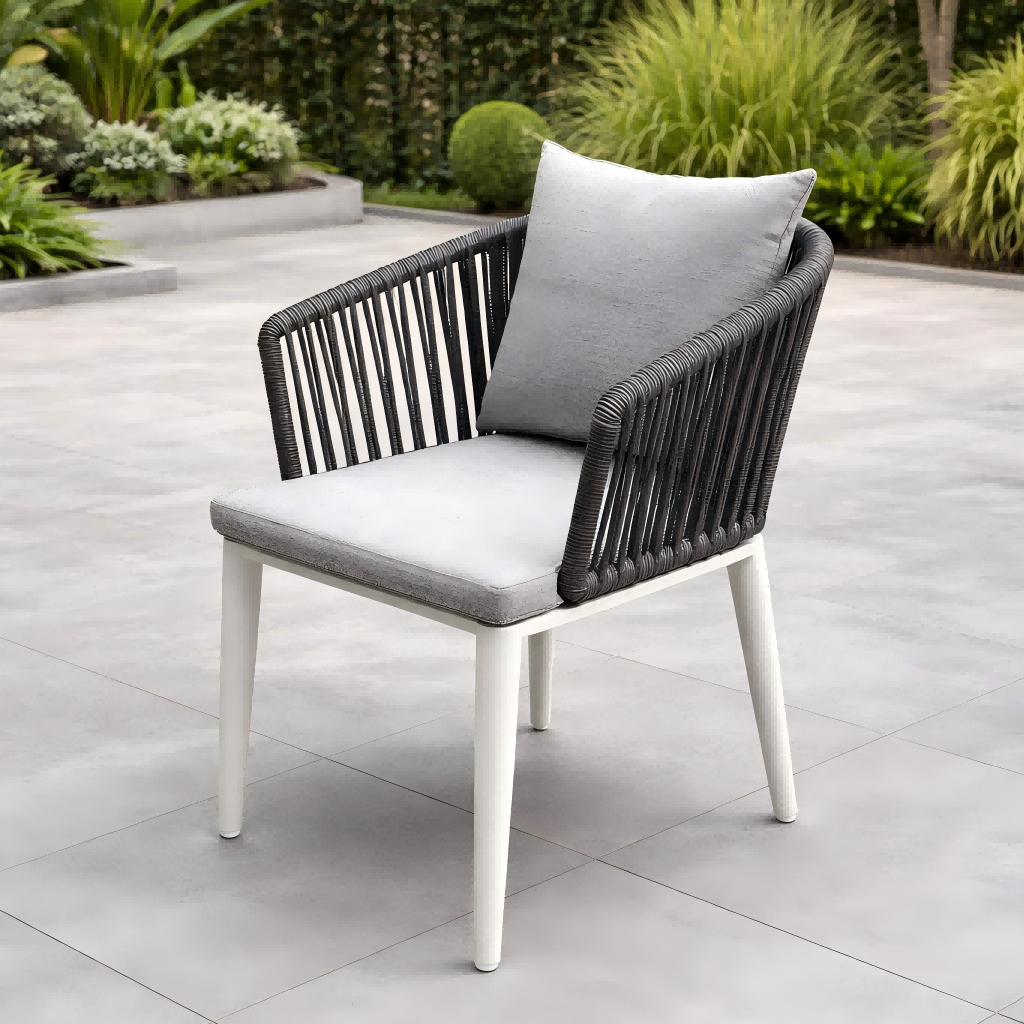 ထမင်းစားထိုင်ခုံများတွင် သက်တောင့်သက်သာရှိသော ပံ့ပိုးမှုပေးကာ ခေတ်မီပြီး ကြော့ရှင်းသောအသွင်အပြင်ကို ဖန်တီးပေးသည့် ကြိုးဖြင့်ပြုလုပ်ထားသော နောက်ဖေးပါရှိသည်။ ဖရိန်ကို အမှုန့်-အလူမီနီယမ်ဖြင့် ပြုလုပ်ထားသောကြောင့် သံချေးတက်ခြင်းနှင့် အပြင်ဘက်ရာသီဥတုအခြေအနေများကို ကောင်းစွာခံနိုင်ရည်ရှိသည်။